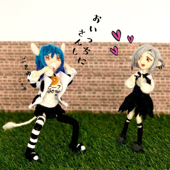 牛乳飲む時はスクワットしながらだと骨も筋肉も強くなるぞ! これぞ『ミノス飲み』 反対から読んでも ミノスノミ😅💦 12月21日は「回文の日」 一つしか思いつかなかった🥲皆んなも考えよう‼︎ #邪神ちゃんドロップキック #ミノス #ぺる2世 #回文の日 #逆さ言葉 #羊毛フェルトフィギュア