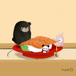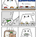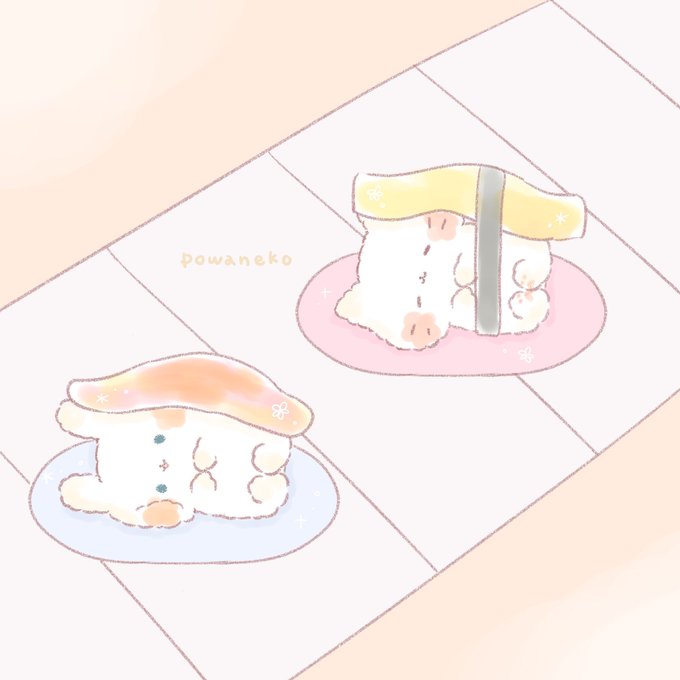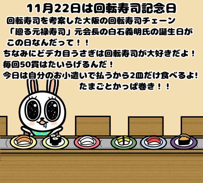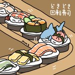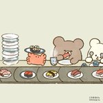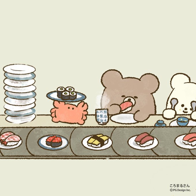 #一日一絵 #毎日絵一枚上げる #イラスト #色鉛筆画 #オリキャラ #イラスト好きな人と繋がりたい #絵描きさんと繋がりたい #回転寿司記念日 回転寿司を食べる強羅丸と月兵衛 強羅丸と月兵衛は昼食に回転寿司屋に来ていた 二人はいくつ食べられるかな