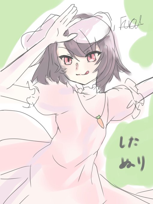 突然の初参加お許しいただきたい Unityにかまけて絵をかけてなかったのでそういえばと思って挑戦 だが、30分オーバー 1時間は私にはむずかc ニンジンネックレス忘れてますね🙃 #因幡てゐ #深夜の真剣お絵描き60分一本勝負