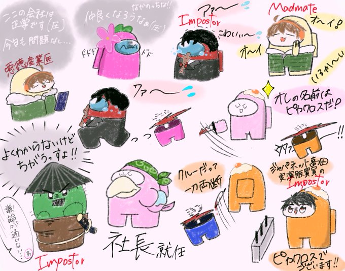 唐突に始まったパワハラ回のドラマ感すこ!色んな視点で見てほしい😃 数人描こうとしたら、結局みんな描いちゃった😌 #因縁アモアス #絵ルコン #いらすとりっぴぃ #あーとっち #なな湖大好きちゅちゅアモアス #高田大好きちゅちゅアート