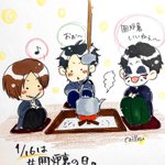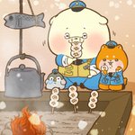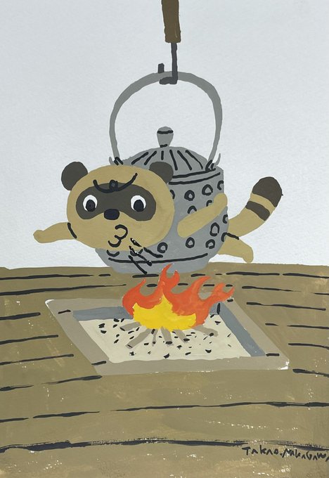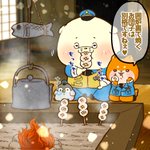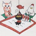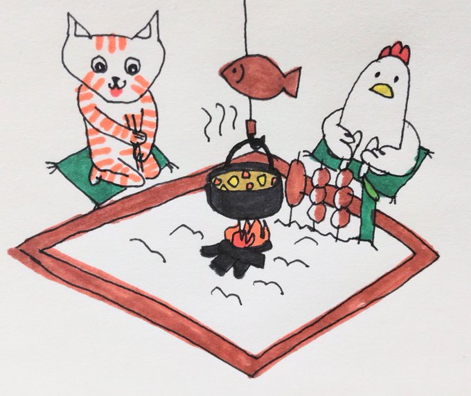 おはようございます!! (#囲炉裏の日 ) ことら、芋煮作ってます!ニワちゃん、 自分の所だけに焼き物刺しすぎ😅 皆さんが心落ち着く日曜日を〜😆 #イラスト好きな人と繋がりたい #絵描きさんと繋がりたい #みんなで楽しむTwitter展覧会 #イラスト