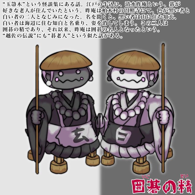 【囲碁の精】 百鬼夜行38人目、囲碁の精。 老人や色白、色黒の2人組などの姿になって現れ、出会った人に囲碁の才能を与える。とても縁起がいい 水木しげる生誕100周年まであと62日。 #水木しげるの妖怪百鬼夜行 #水木しげる生誕100周年 #色鉛筆イラスト #イラスト好きな人と繋がりたい #囲碁の日