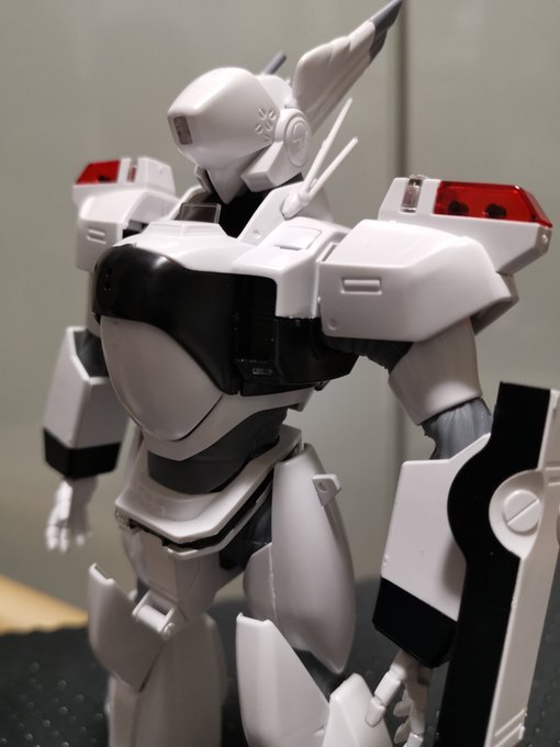 1/60 R-greyガレージキット「ヘラクレス21」完成しました。 関節部を市販ジョイントで繋げて脂取り紙で覆い、頭頂部センサーは妖怪パーツ隠しにあいましてジャンクパーツから作り出しました。 シャベルは百均のです♪ #パトレイバー模型部 #パトレイバー #国際レイバーショウ2022