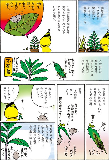 #国際生物多様性の日 なので、目立たない所で落ち葉を分解しているタイプの虫を見て行くといいよ。 ⚡️「【 #創作漫画 】ワラジ虫観察漫画まとめ1」(作成者: @hiyokoblackさん) twitter.com/i/events/83913…