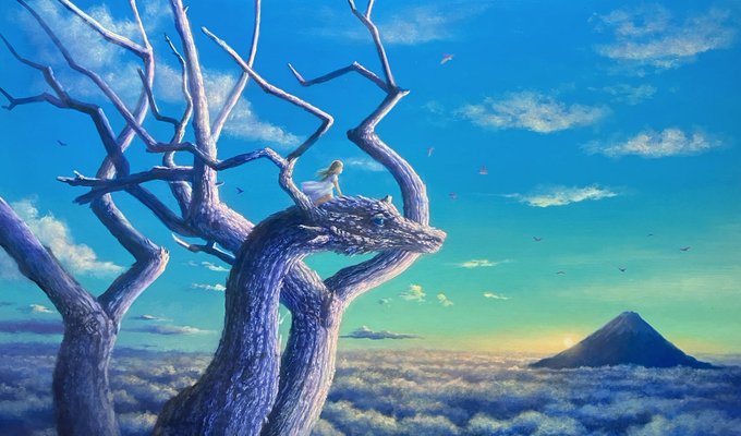 「天界」 F6号 油彩 2023年 #art #oilpainting #nature #dragon #artwork #fantasyart #絵画 #油彩画 #自然 #龍 #himenakokufuta #國府田姫菜