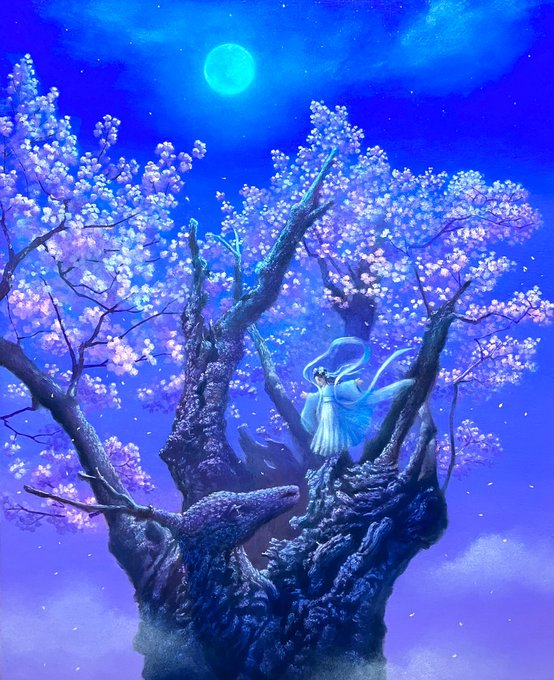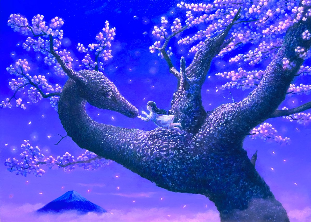 「舞桜」 F3号 油彩、ジェッソ、綿布、パネル 2022年 #art #oilpainting #nature #dragon #artwork #fantasyart #絵画 #油彩画 #自然 #龍 #himenakokufuta #國府田姫菜