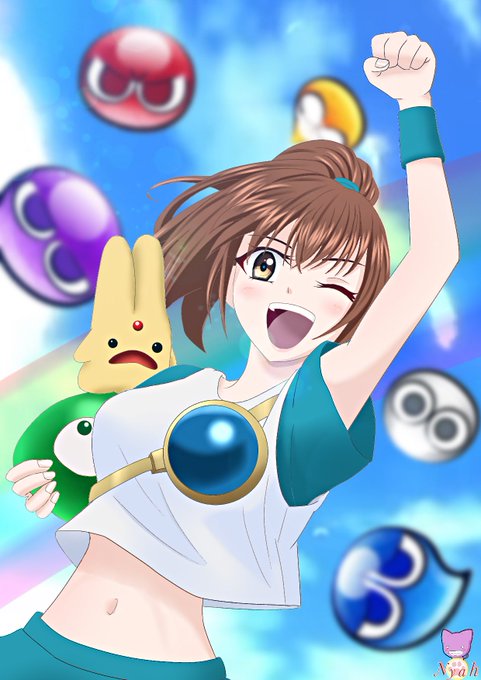 #園崎未恵 さん生誕祭(2/7) 「#ぷよぷよ」シリーズ及び「#魔導物語」シリーズの主人公、#アルル・ナジャ だそ。コンパイル時代の衣装採用。 「ファイアー!アイスストーム!ダイアキュート!ばよえ〜ん!ばよえ〜ん!」 #みんなで楽しむTwitter展覧会 #絵描きさんと繋がりたい #イラスト