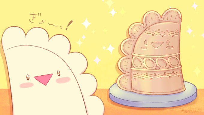 ギョザ型どぐう🥟 みんなにたくさんギョーザを食べてもらえるように、 おいのりしなくちゃ!✨ #ゆるいイラスト #イラスト #illustration #illustrations #ギョザー #土偶の日