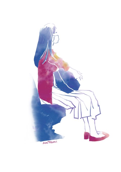 快速に乗って 昨日、電車にて、通路を挟んで隣の方を描きました。 #電車スケッチ #natsumitworks #土田菜摘 #習作 #adobefresco #ipadpro #ipadpro #illustration #drawing #sketch