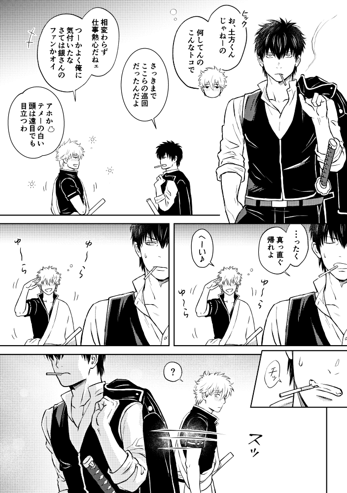 🎊㊗️土銀真ん中バースデーおめでとう〜!㊗️🎉 リクエストの台詞は 「そうだよな、お前はそういうやつだもんな」 「これの意味も知らねェほど、てめぇは馬鹿じゃねぇだろ。」 「なにって、…どうみてもお前のパンツだろーが。」 の3つで描かせてもらいました❤️🍰🍓✨ #土銀ランダムリク企画