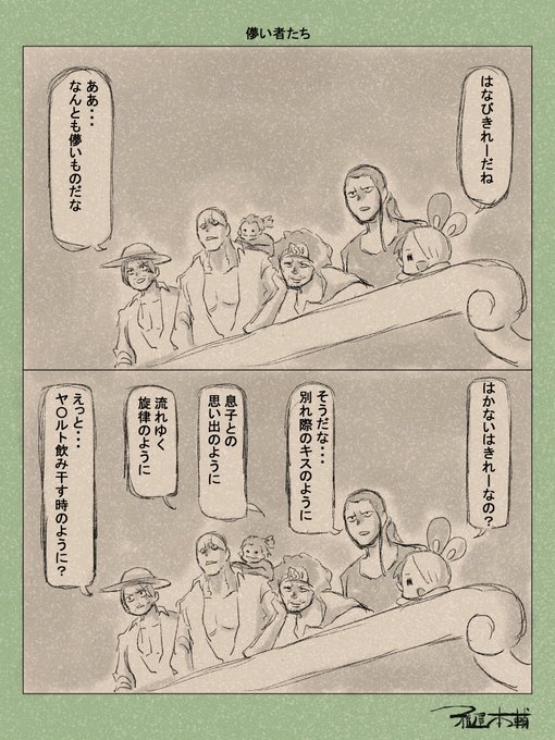 在りし日の赤髪海賊団その44です 過去分は以下より閲覧いただけます twitter.com/i/events/15683… #FILMRED文化祭 #アート部門 #ONEPIECE #FILMRED #ワンピース #シャンクス #ウタ #在りし日の赤髪団 #マルコ誕生祭2022 #不死鳥マルコ誕生祭2022