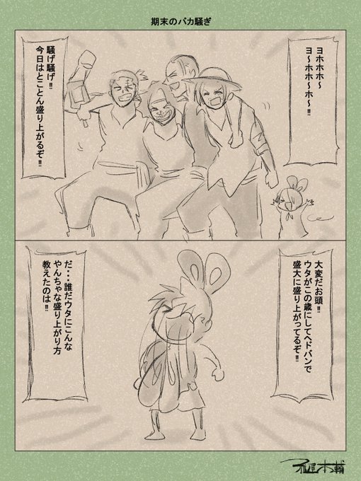 在りし日の赤髪海賊団その94です 過去分は以下より閲覧いただけます twitter.com/i/events/15683… #ONEPIECE📷📷 #FILMRED #OP_FILMRED #ワンピース #シャンクス #ウタ #在りし日の赤髪海賊団 #マンガが読めるハッシュタグ #バニーの日