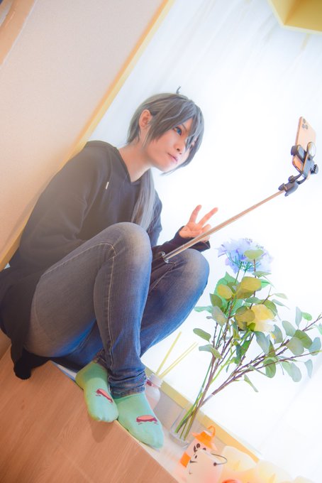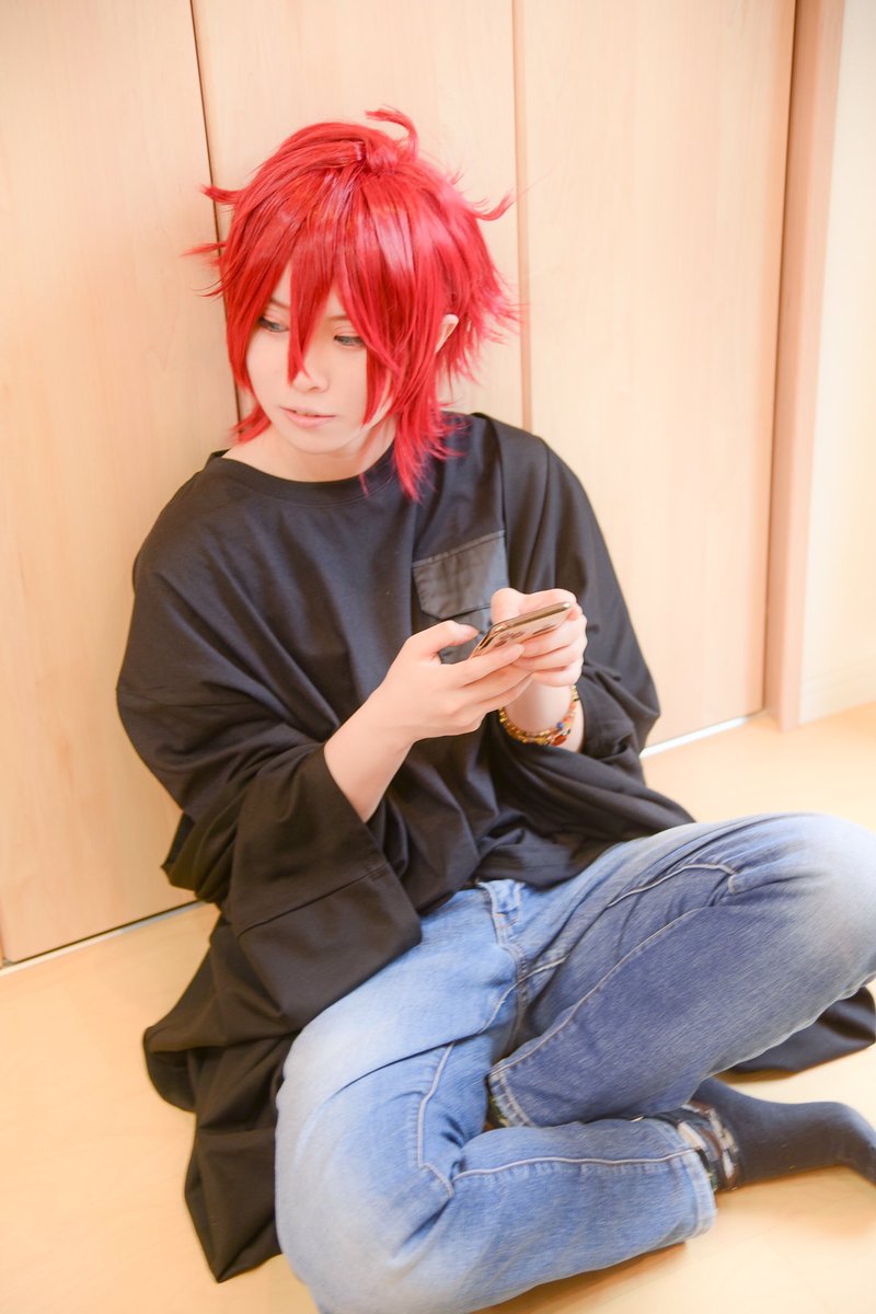 【cos/オフショ】 これは隣で自撮りする可愛い千秋と北斗を横目で見守る燐音クュ と ケーキのロウソクに火をつけるべくコンロの火と格闘する燐音クン 📸 京花(@_ground_87F ) ⚠︎捏造衣装() このTシャツ可愛すぎるから普通に着たい〜(たぶん着ない #地下アルプスの天然ユリもも水