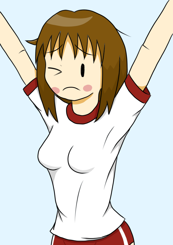 相変わらずの体操着線目ちゃん(仮) 一応背伸びの運動のつもり。 最近は服のしわに描くようにしているが自然なしわの表現って意外に難しいですね。 (あと透明感ある液体の表現も、、) #イラスト #体操着 #地味子 #モブ顔 #モブ子 #絵描きさんと繋がりたい #イラスト好きな人と繋がりたい