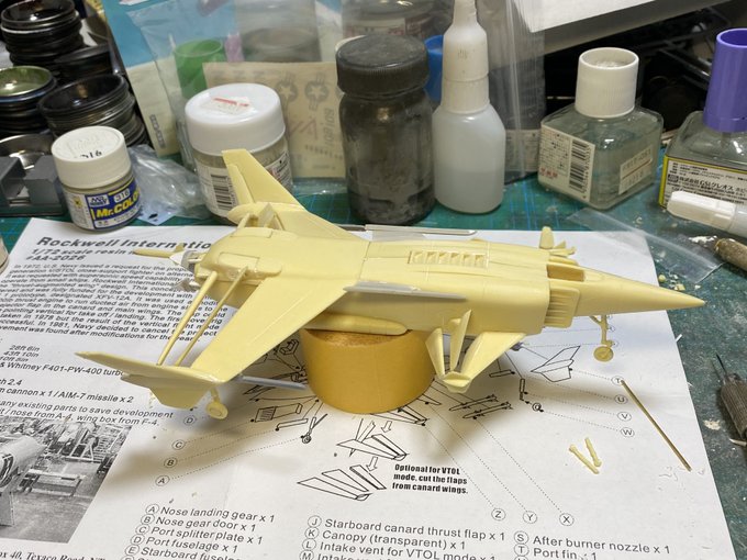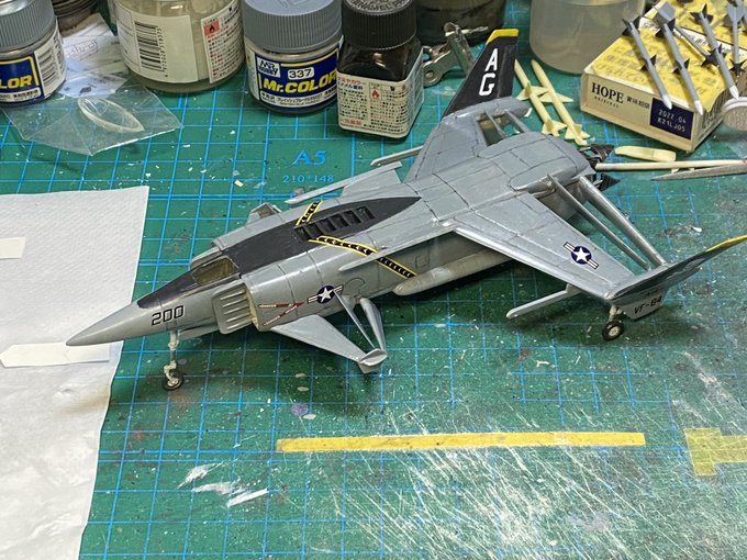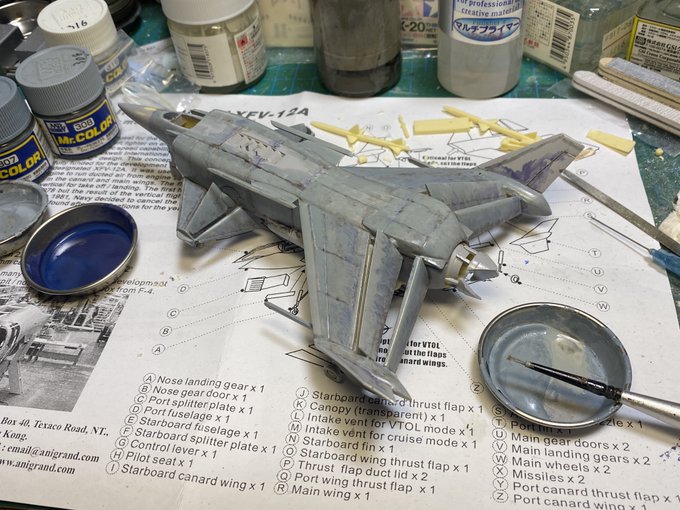 Anigrand 1/72 XFV-12 完成。 XFV-12がもし実現していたら?をコンセプトに制作してみました。90年代くらいのイメージ。 ノズルがパドル式なのはVTOL遷移時にノズルの開閉がこちらの方が早そうなのでX-31からのフィードバックという事で。 #地獄のVTOL機祭り #地獄のVTOL機祭り完成
