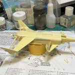 ART MODEL 1/72 Yak-141ロールアウト! \( 'ω')/ヘーイ 途中で色々ありましたが無事に完成しました。組み易いとは言い難いキットですが、こんな珍機をインジェクションキットで作れる幸せプライスレス。RTいいねで応援くださった皆様に感謝を。 #地獄のVTOL機祭り #地獄のVTOL機祭り完成