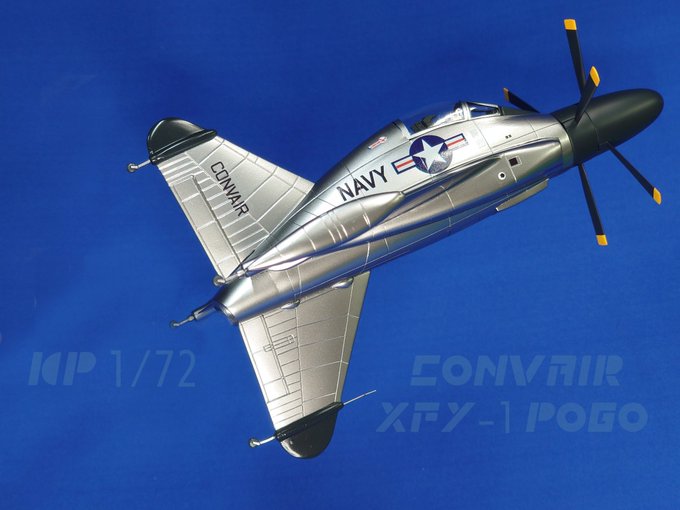 KP 1/72 XFY-1 POGO ロールアウト! \( 'ω')/ヘーイ 勘合も良く組み易い、気軽に珍妙なスタイルを堪能できる楽しいキットです。色々あったけど無事に完成しましたー! 今回も主催…は自分やんけ。RTいいねで応援くださった皆様に感謝を。 #地獄のVTOL機祭り #地獄のVTOL機祭り完成