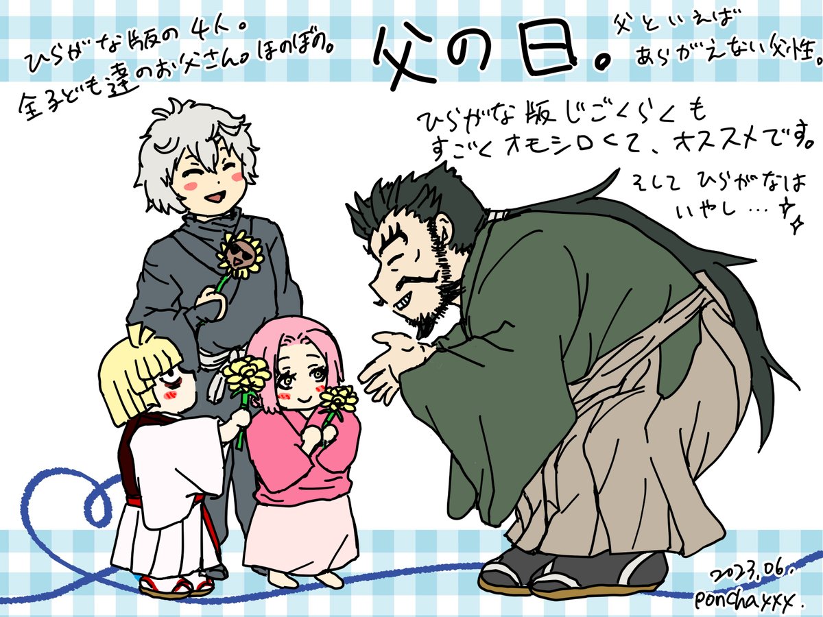 ちょうど #地獄楽アニメ もこの4人の共闘パートに入りましたね。地獄楽には、おおはし先生が描かれた公式ギャグマンガ・じごくらく(通称ひらがな版)があります。今アニメ放送中のここのひらがな版父性カンスト巌鉄斎は漢字版より極悪犯〇者なのにツッコミ系常識人なのが好き💚 #地獄楽ファンアート