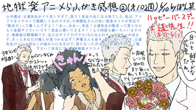 #地獄楽アニメ 第10話の感想絵②です。 士遠先生、お誕生日お目でとうございます🎉もう第10話の先生がイケ目ンすぎて✨ #山田浅ェ門士遠誕生祭2023 #山田浅ェ門士遠生誕祭2023 #地獄楽ファンアート (士遠先生の感想ですが、市川蒼さんのサイン入り台本ください🤩) twitter.com/jplus_jigokura…