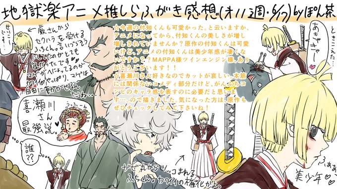 #地獄楽アニメ 勝手に応援アナウンスイラスト! 今週は第10話の賀来ゆうじ先生のアナウンスイラストの付知くんの衣装で。 第10話の付知くんは本当に全ての挙動が美しく気高かったです。第11話では付知くんのあのセリフが聴けるかな?💛 #地獄楽ファンアート (市川さんの台本があたりますように🙏) twitter.com/jplus_jigokura…