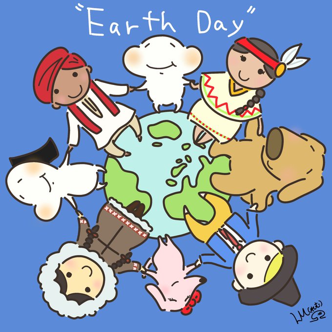 23/4/22 #アースデー ( #地球の日 ) #国際母なる地球デー 地球は大きなお家みたいだよね🌏 見た目も文化も違うけど みんなで手を取って仲良く過ごしたい✨ 今日もそう思うおもちなのです♪ #おもちの日々 #イラスト #みんなで楽しむTwitter展覧会 #絵本作家