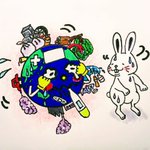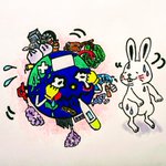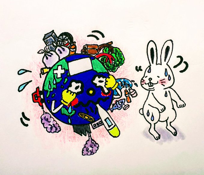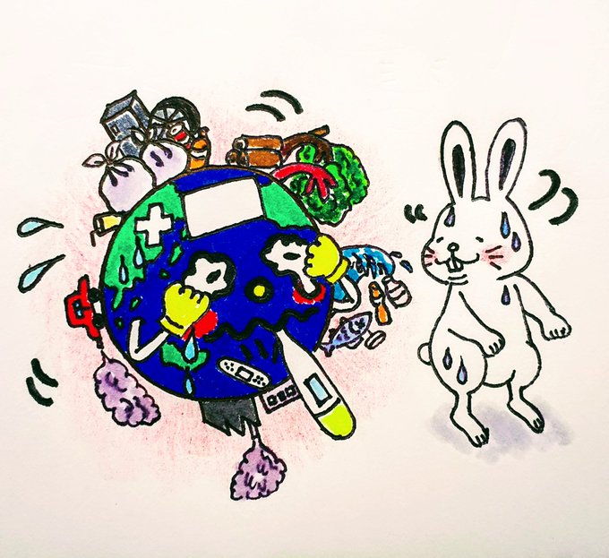 こんにちは! 前歯うさぎさんです(о´∀`о)/ 【猛暑で暑い!! ~地球も暑いんだね~】 #イラスト #前歯うさぎ #イラスト好きさんとつながりたい #絵描きさんと繋がりたい #rabbit #illustration #夏の創作クラスタフォロー祭り #猛暑 #地球 #地球温暖化 #earth