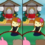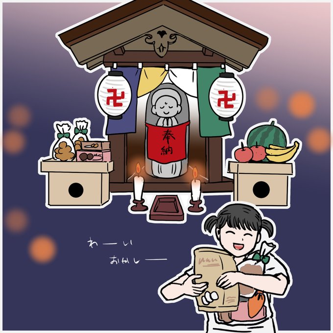 間違い探しに挑戦してみてね! 答え合わせは次回の投稿です。 #夏の思い出 #地蔵盆 #辻地蔵 #illustration #イラスト #イラスト好きな人と繋がりたい #絵描きさんと繋がりたい #ゆるいイラスト