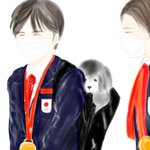 Thank you, #TheIce2022 ‼️ 🙏🤩❤️✨ #ShomaUno #宇野昌磨 🥇💖👍 #NatanChen 🥇💖👍 #KaoriSakamoto #坂本花織 🥇💖👍 Watercolor, black ballpoint pen, white gouache 🖌️🖋️ #fanart
