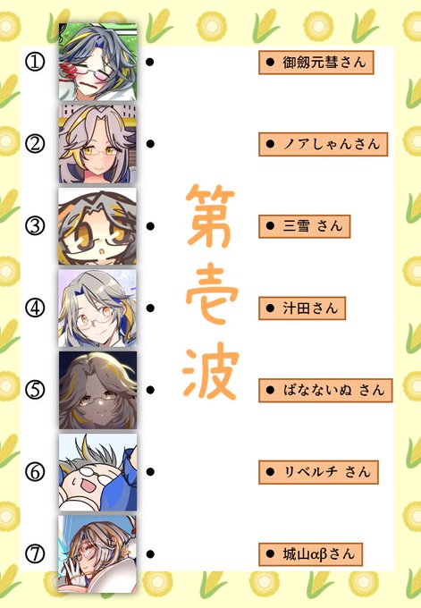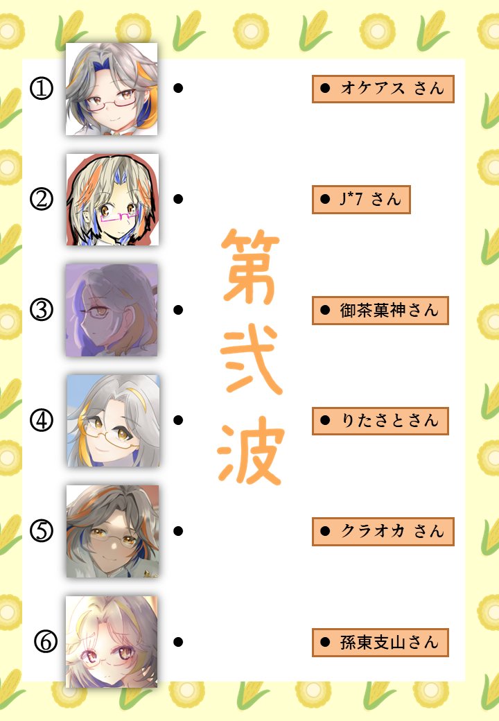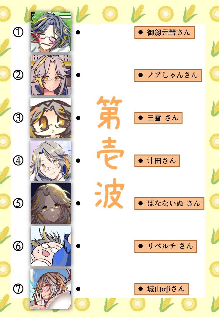 #城プロ版絵描き当て線結びクイズ 第弐波 いさな様(@137ch ) 御乃杜ユウ様(@minomori_yu ) 御茶菓神様(@wochagashin ) 孫東支山様(@azumago ) 三雪様(@three_yuki ) ぎんじょう様(@shameimaruaya9 ) 高木亮輔様(@ryousuke_takagi )
