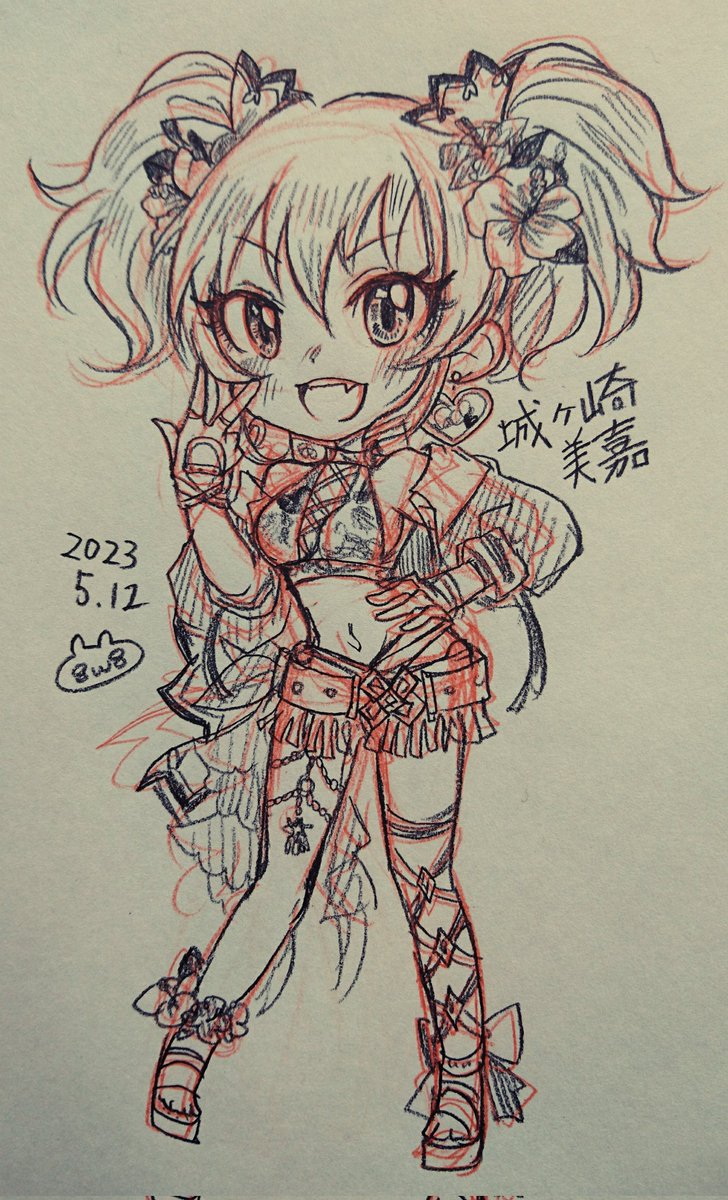 城ヶ崎美嘉さんを描きました。 前に進む力の強さと乙女な心が同居するパッションさん。 そう美嘉姉はかわいい恰好も似合うのよ ありがとうLiPPS #デレマス版深夜の真剣お絵かき60分1本勝負 #城ヶ崎美嘉