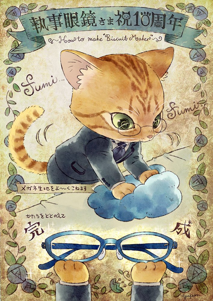 10周年おめでとうございます🎉✨ 執事眼鏡さんオリジナルの猫メガネ『Biscuit Maker』の製造現場を妄想しました…fumi…fumi…🐾 (モデルはツネタ社長さんちのひまわりちゃん🌻) #執事眼鏡eyemirror10周年