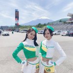 ピットウォークありがとうございました🚶♀️✨ 富士山をバックに #さいたまっち と #コバトン と記念撮影したよ😚✨ 2人とも可愛いね(*´ `*)ノ そういえば今日は 髪の毛ウェーブ巻きにしてみた! どうかな??😌💚💚 #埼玉トヨペットGreenBrave #埼玉トヨペットサポーターズ2022 #supergt