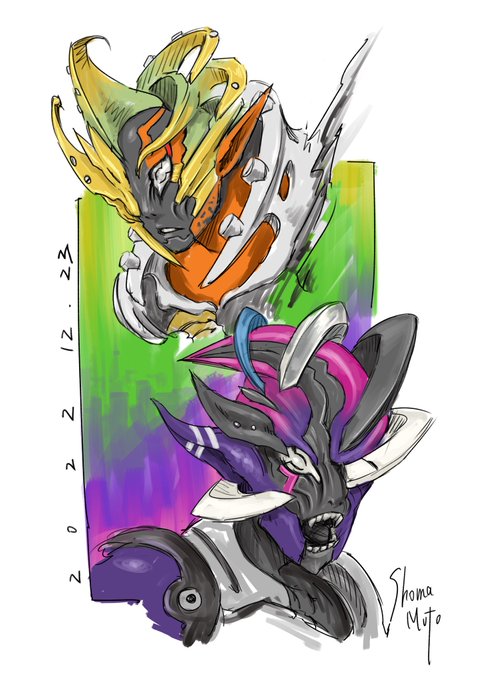 #ギーツリバイスMOVIEバトロワ この度、劇場作品 「仮面ライダーギーツ×リバイス MOVIE バトルロワイヤル」 にてイザンギとバリデロのデザインを担当させていただきました! バリデロ 役 #堀川りょう さん イザンギ 役 #神谷浩史 さん という豪華声優陣! 皆様是非劇場へ!