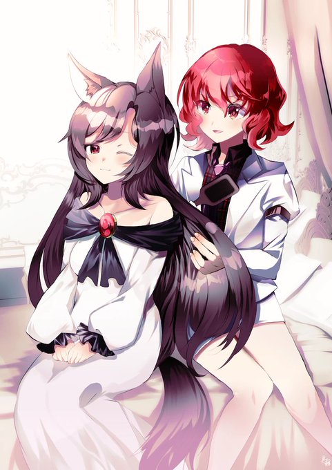 【skeb】雷鼓さんに髪を梳かしてもらう影狼さん。リクエストありがとうございました! skeb.jp/@fantasydolce/… #Skeb #Commission #堀川雷鼓 #今泉影狼 #東方Project @skeb_jpより