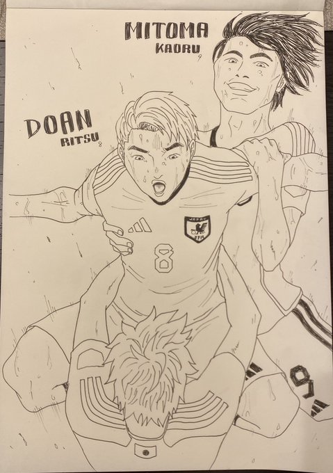 NUMBER 01! 誰より速く 駆け抜け トリッキーなプレイで世界へ向け スタートダッシュ! メラメラメラ 行くぜキックオフ 飛び出そう どデカイ ドリームフィールド。🎶 #堂安律 (@doan_ritsu) #板倉滉 (@kougogo1270) #SAMURAIBLUE #サッカー日本代表 #絵描きさんと繋がりたい
