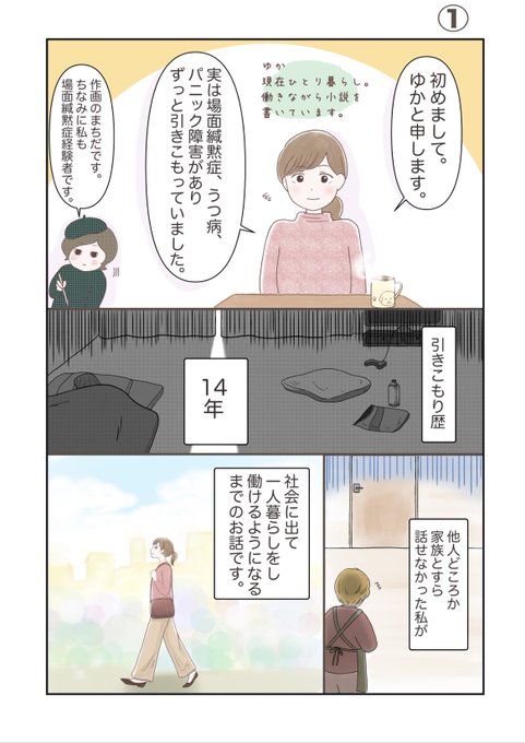 ゆかさん@yuka002700 のエッセイを漫画化させてもらいました😊 引きこもり歴14年からの脱却を、できるだけコミカルに描きました。 かなり脚色しているので実情を知りたい方はゆかさんのアカウントを訪れてみてください^ ^ #漫画が読めるハッシュタグ #場面緘黙症