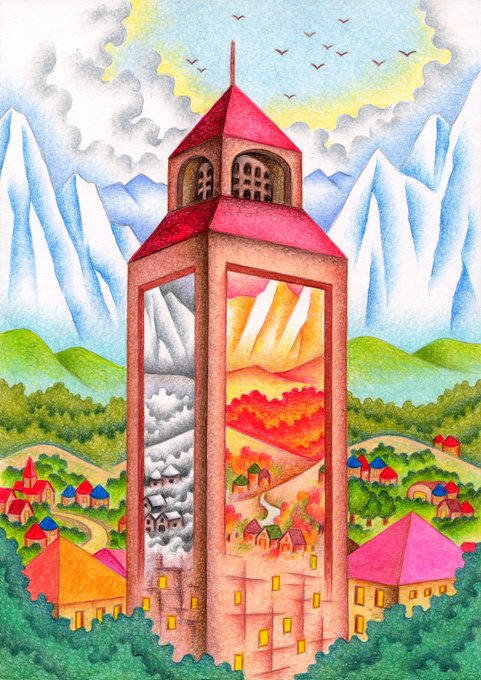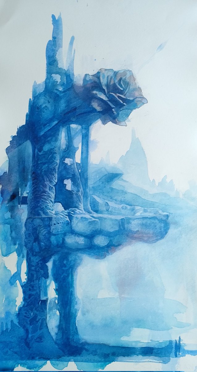 薔薇の塔(Tower of roses) 峠、遺跡、巨石、何に使われたかわからないのもの。 #art #watercolor #透明水彩 #青 #art #blue #峠 #イラスト #illustration #Remains #Ruins #遺跡 #シュールリアリズム #surrealism #絵画 #contemporarydrawing #花 #flower #磐座 #薔薇 #rose #塔 #tower