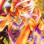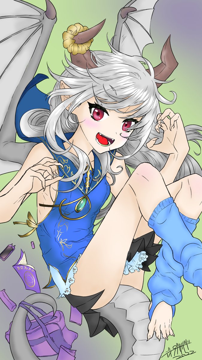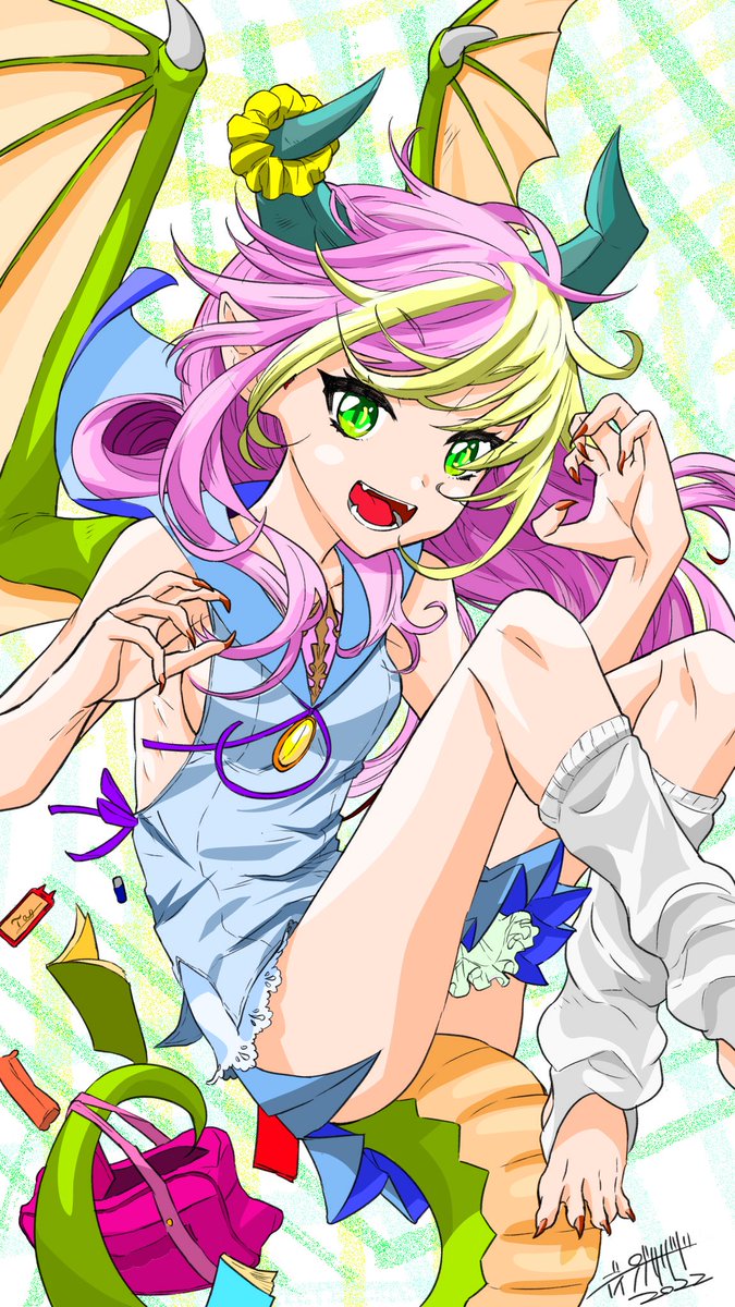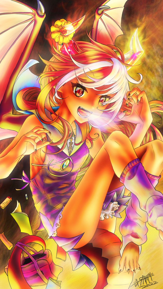 魔王様の塗り絵企画、描き終わり!😃 溶岩の流れる洞窟で出会ったサラマンダーさん🐲🔥 慌てすぎて荷物が落ちてるよ~ 角はクリスタルっぽくしてみました。あと、下からのライティングをあまりやった事がなかったのでチャレンジ。上手くできたかなぁ🤔 #塗ったよ魔王様 #イラスト #AdobeFresco