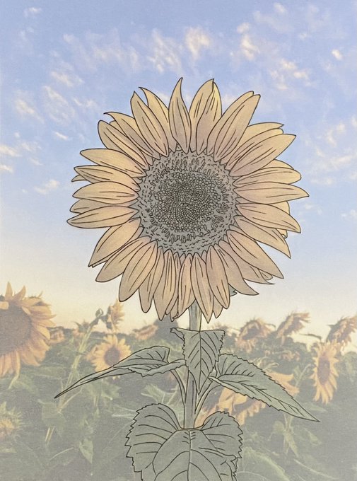 塗り絵「お花編」ヒマワリの線画ができました。管状花と呼ばれる、中央の部分を描くのが大変でした。 #塗り絵線画 #イラスト #絵描きさんと繋がりたい #みんなで楽しむTwitter展覧会 #オリジナル塗り絵作ります