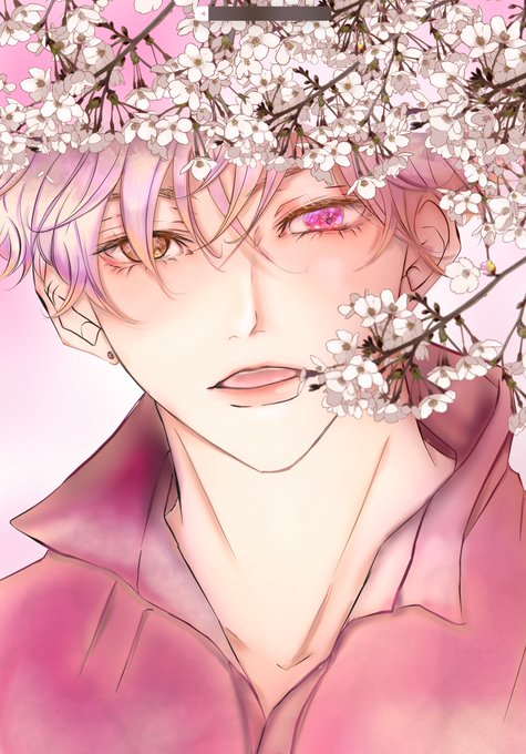 ブラシ塗り応用編(๑•̀ㅂ•́)و✧キャラはオリジナル漫画「ヴァンプ」の「チアキ」です♡桜はクリスタの素材買わせて頂きました✨✨クリスタ様々ですm(_ _)m #漫画が読めるハッシュタグ #絵柄が好みっていう人にフォローされたい #イラスト #塗り練習 #創作男子