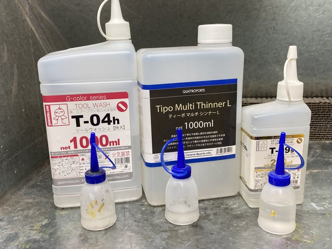 #塗装で使ってる道具を書いて作品をアップする ざっくり言っちゃうとラッカー系エアブラシメインというあんまし面白くないやつなので、オススメの塗装道具をリプで紹介します。 というか道具を貼って紹介するタグなのかと思って道具の写真を4枚撮っちゃったんでそれを貼ります。ご参考になれば…