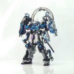 ガンプラだと カーボン調塗装 黒下地にストッキング当て付けシルバーを全体的に軽く吹く フレームは黒だと味気ないので、パールパープルでグラデーション付け 各部パイプ部はメタリックブルーで仕上げた #塗装の日 #塗装の日だしお気に入りの塗装晒そうぜ #ガンプラの画像を貼るとRTされると聞いて