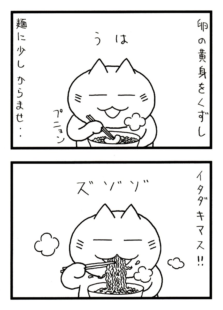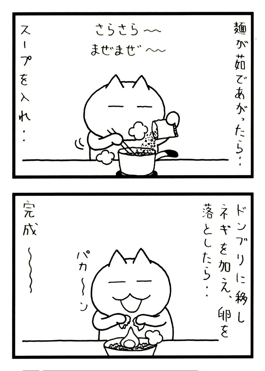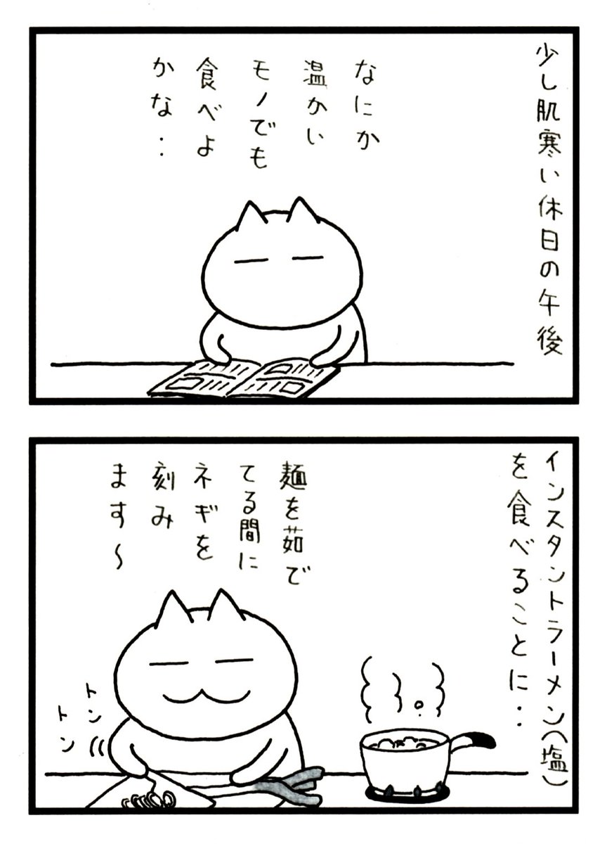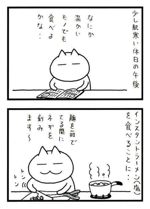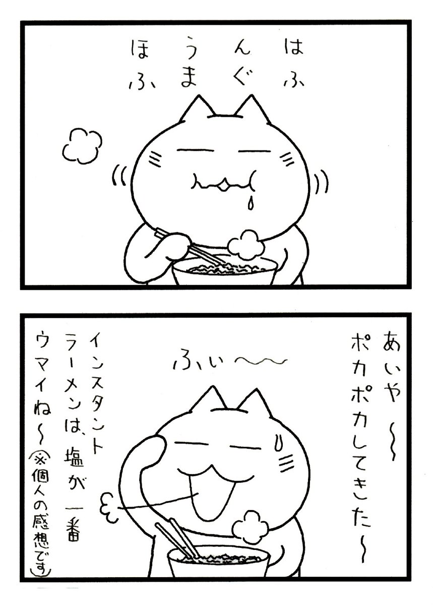 いつも腹ぺこ ネコ谷さん(48話) お料理のレシピもお店の紹介も無い、 ネコ谷さんが飲食する…だけの なんちゃってグルメ漫画🍴 #漫画 #4コマ漫画 #4コマ #ネコ谷さん #漫画が読めるハッシュタグ #インスタントラーメン #塩ラーメン