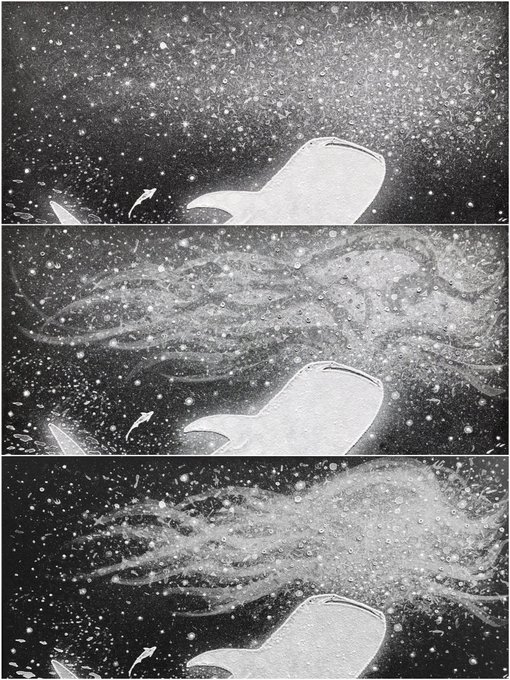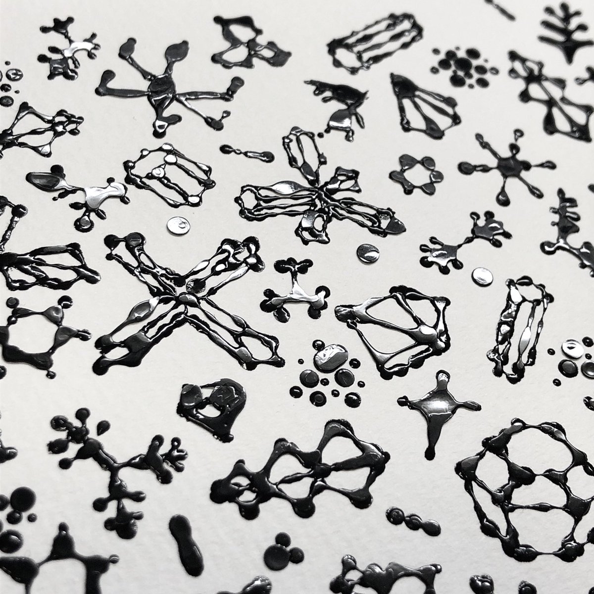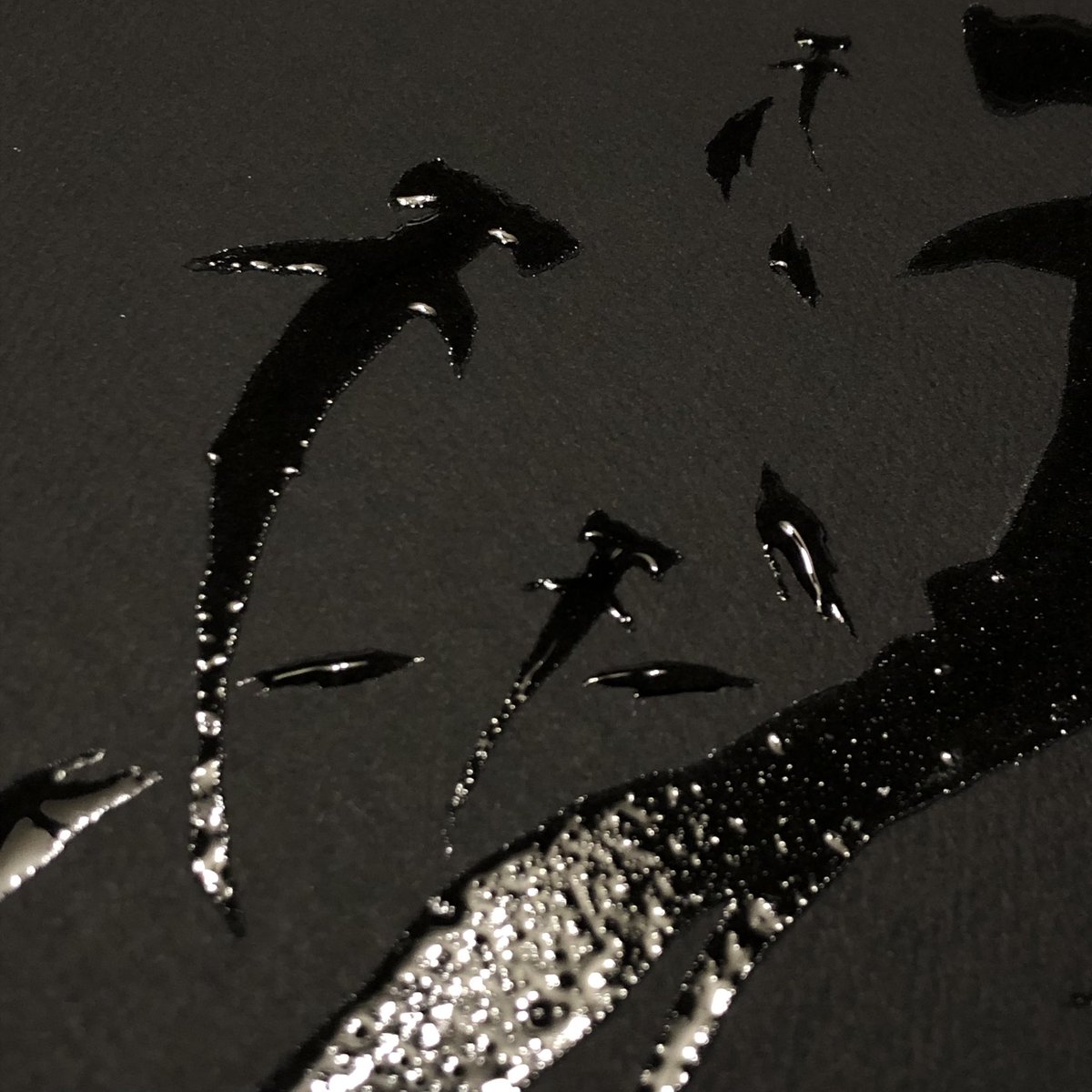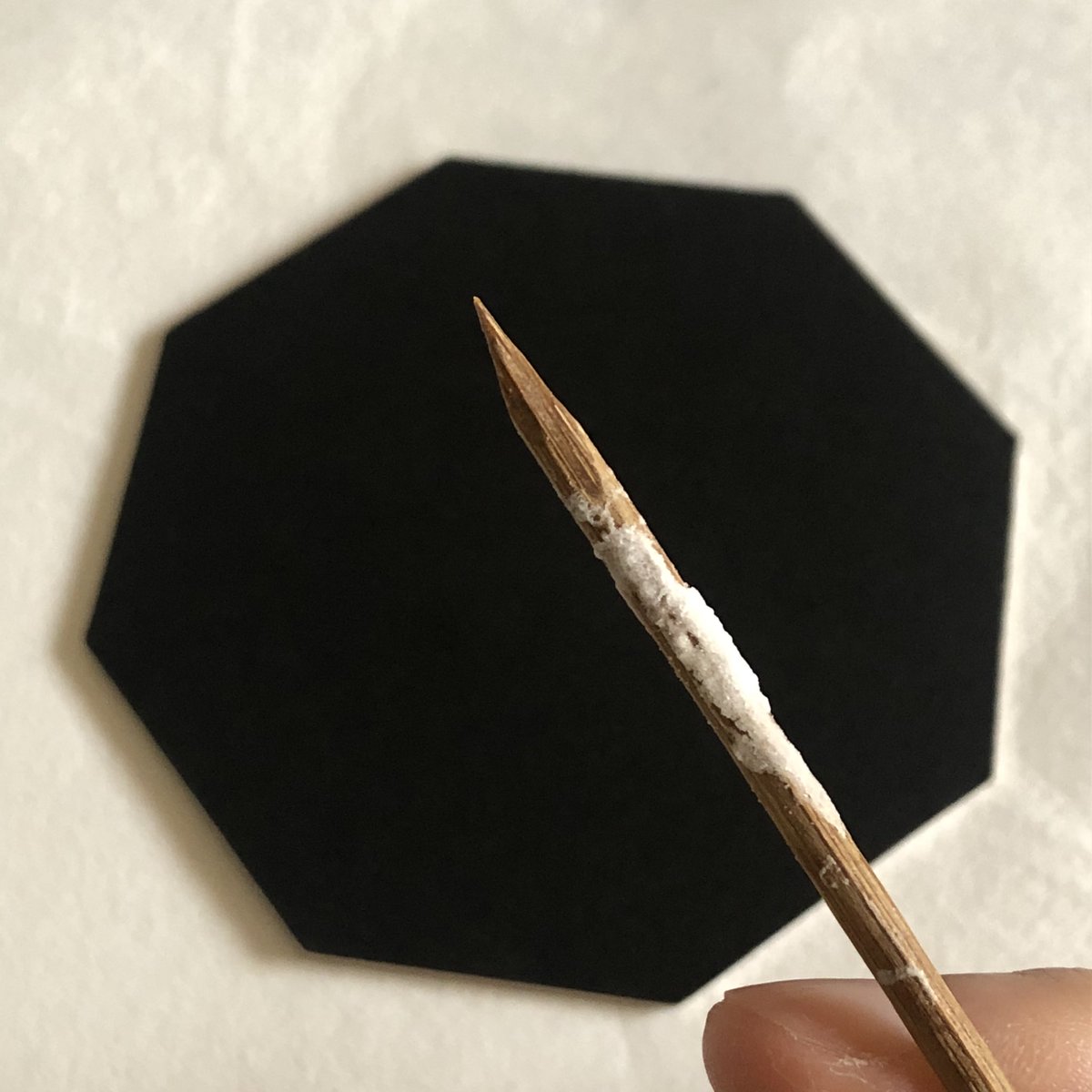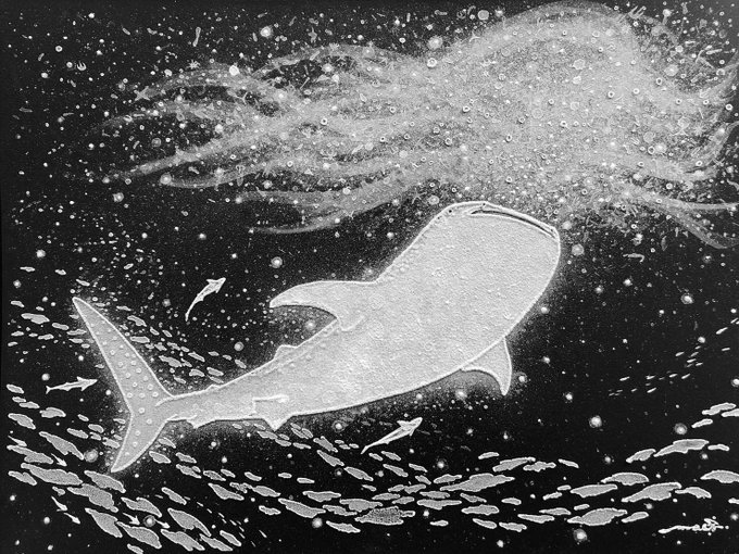 #何も言わず全人類みてくれ 位置決めしただけなので、一旦仕舞ってきましたが この塩水で描き作った塩の結晶作品(変化中)を観てほしい…! 2019年に制作した #塩水アート 作品なのですが お分かりいただけるだろうか… 勝手に塩が鮫肌の如く仕上がったのは我ながらびっくりした🦈未だ健在です↓
