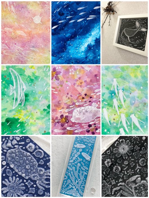 GW【原画通販】開催中 ●5/4(木)24:00まで lashima.thebase.in 原画は会期中のみ #塩水アート 小作品を含む原画たちをずらっと並べ、各ページにはいろんな角度の写真やコンセプトなども載せているので見るだけでもぜひ🐠 新しいグッズたちも一緒に追加して早速遠方の方からのご縁🙏感謝です!