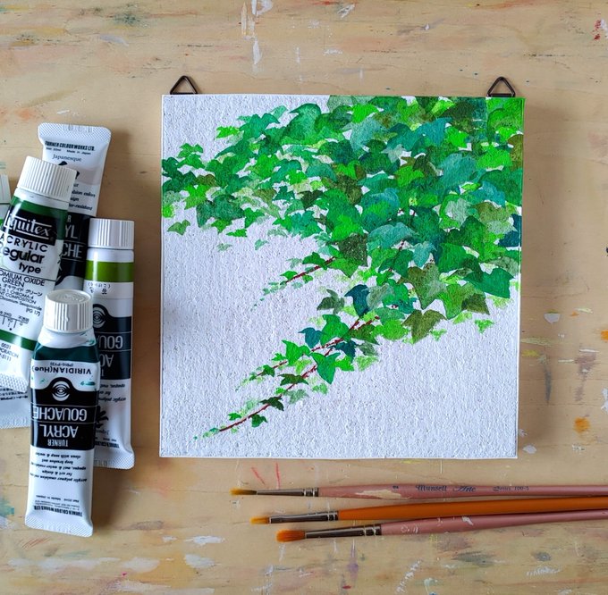 クリスマスに絵を贈る🎄 ちょっとお洒落じゃないですか? ラッピングしてお届けします🎀 #絵柄が好みって人にフォローされたい #Christmas #ギフト #green #壁に飾る #絵 「ツヤツヤ葉っぱ、元気なアイビー!」コルクボードの原画*壁飾りCreema creema.jp/item/11567751/… @Creema_jpより