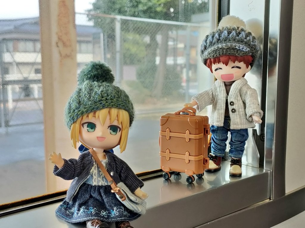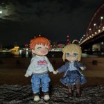 1/28【まいぶーむ】ふらいんぐ (新撮り📸✨) うちの子にミニチュア持ってもらって 実物と一緒に撮ることです( ∩'∀'📸⊂ ) #深夜のねんどろ撮影60分一本勝負 #ねんどろいどどーる #セイバー #士郎 #士剣