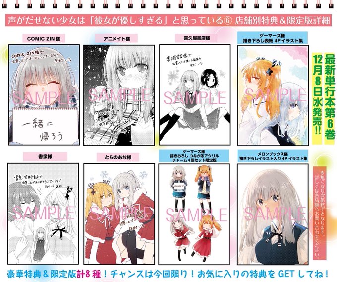 単行本9巻11月8日発売です⛩ よろしくお願いします🌸 特典一覧はコチラになります 💠予約開始してます→ onl.la/KsXNvTq #声がだせない少女は彼女が優しすぎると思っている