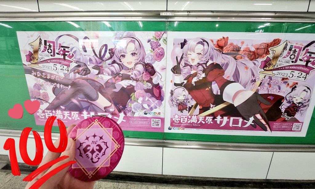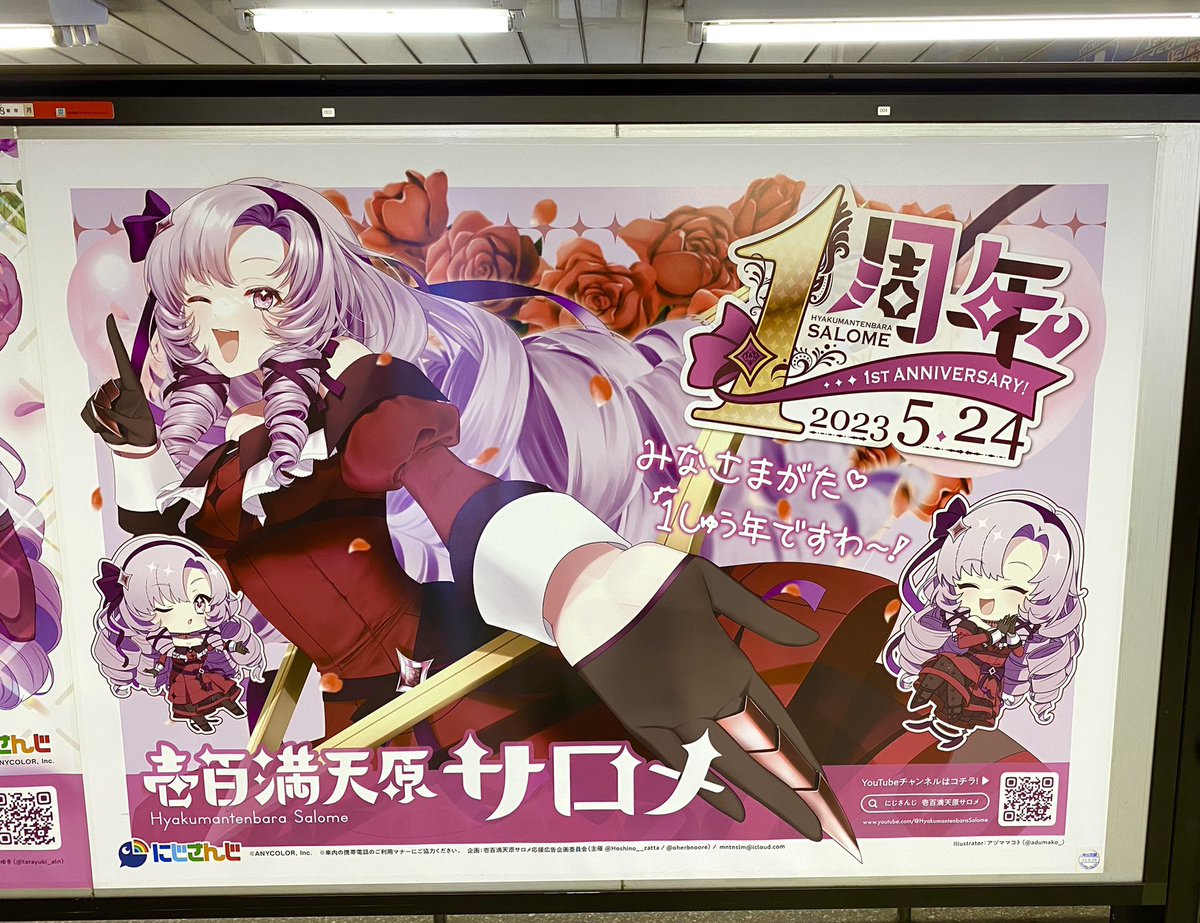 周年広告見てきました👏👏 改めて一周年おめでとうございます㊗️💯💕 推しを思う皆の気持ちが具現化してて、感無量です😭 めっちゃ可愛かった…!これからも推すぞ〜! #壱百満天原サロメ応援広告企画 #サロメ百万展 #サロメ壱周年