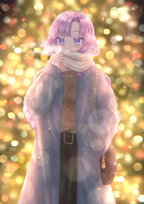 (あっ来た) 「今日もお疲れ様ですわ💕 駅までご一緒しませんか?」 某バイト終わり その後の1シーン マフラーしまい髪がどうしても描きたかったんです🙇♂️ #サロメ百万展 #壱百満本のクリスマスツリー